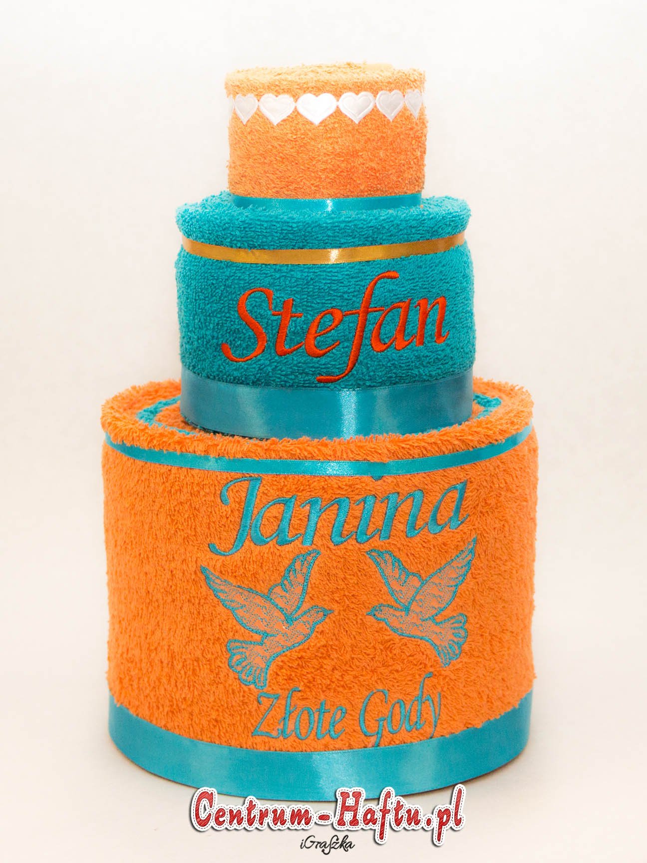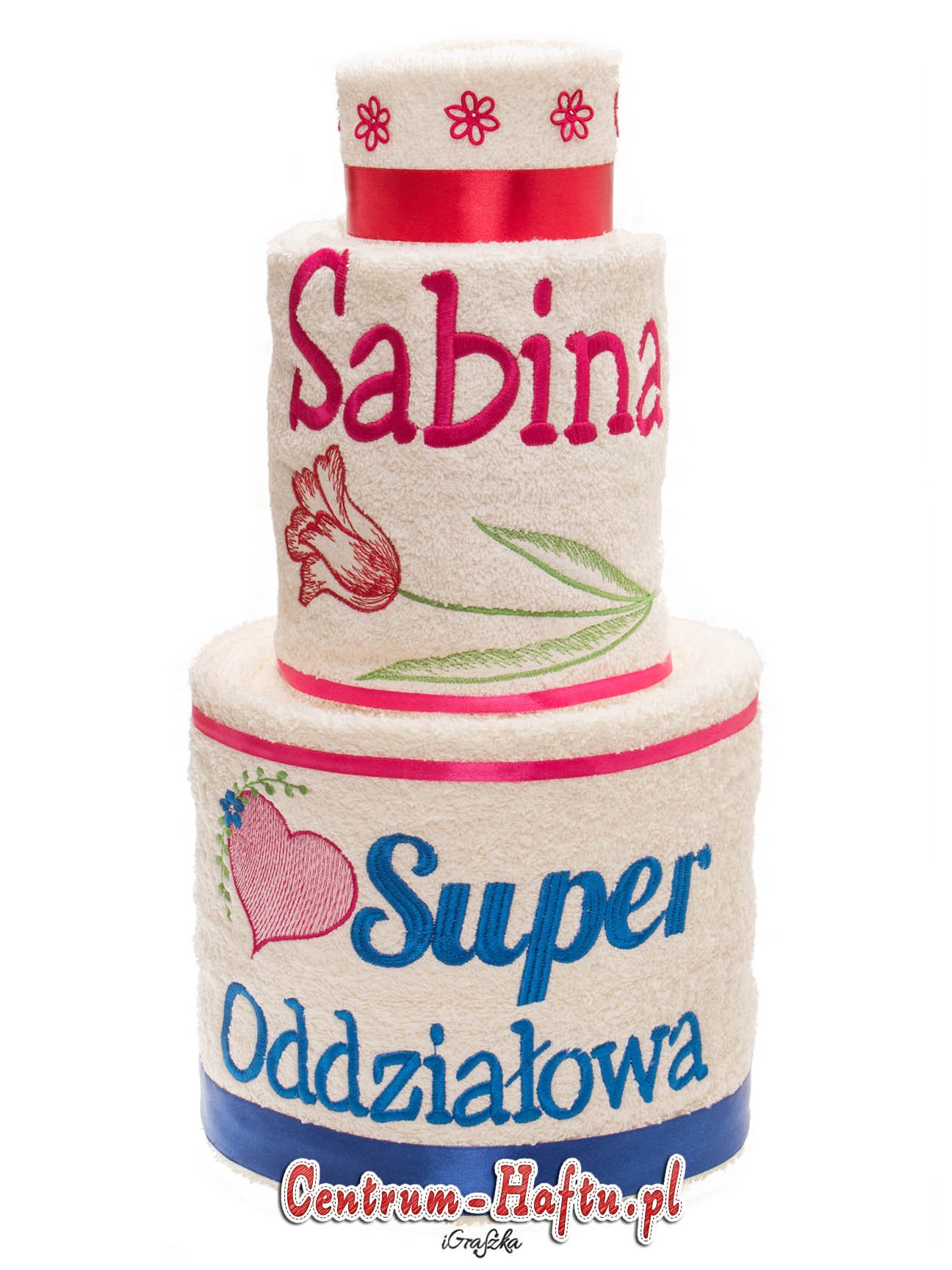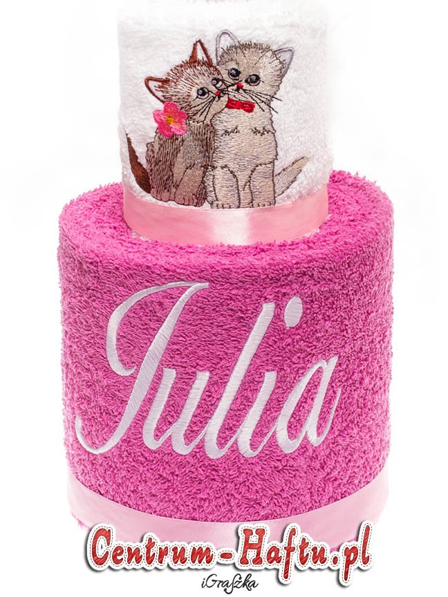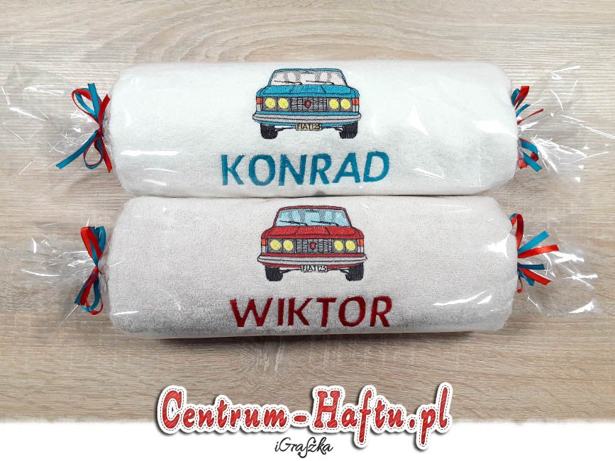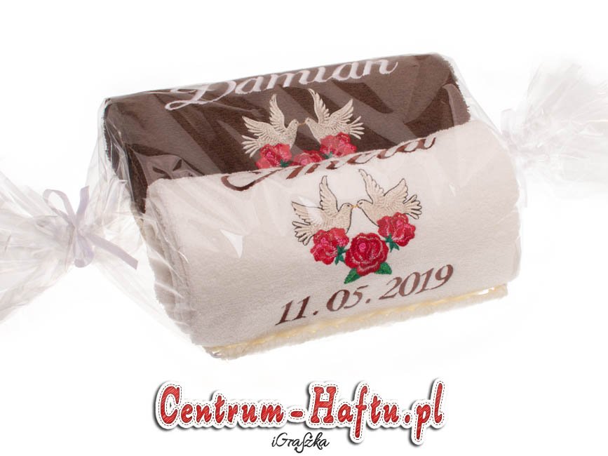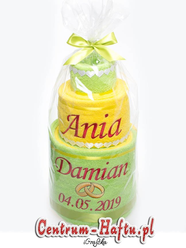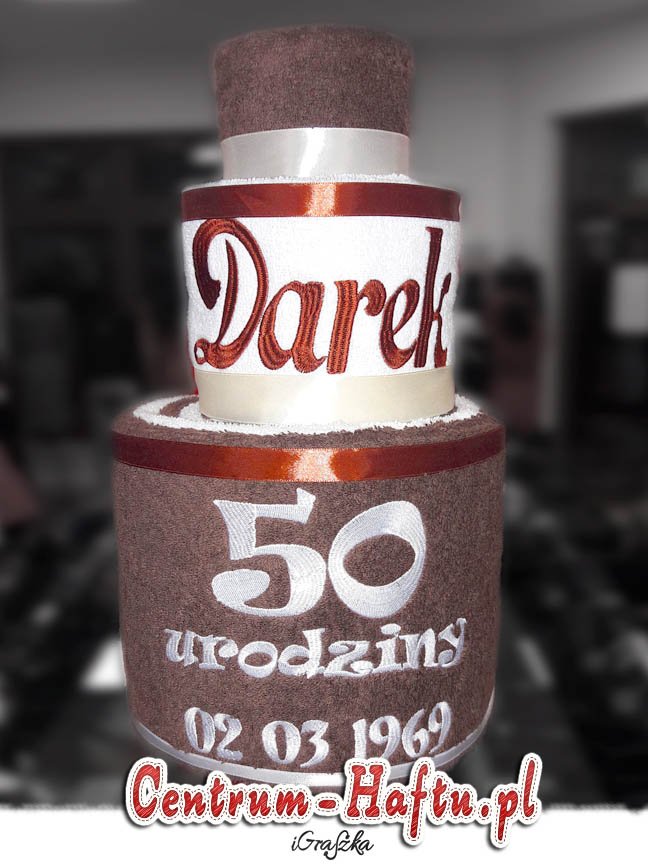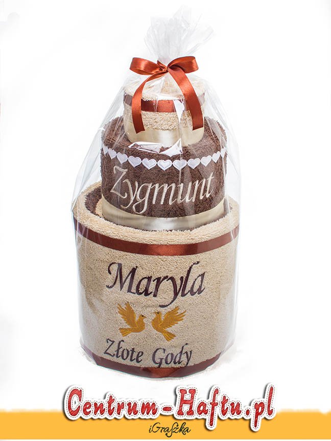 Ręczniki chłonne 500 g/m2 (GSM) grube, porządne, na lata. Zapytaj o dostępne kolory. Oferujemy torty złożone z min. 2 do 4 sztuk ręczników, cukierki złożone standardowo z 1-2 sztuk ręczników, ale jest mozliwość złożenia z większej ilości np. 3-4- sztuk. Dla większych wyhaftowanych grafik, ręczniki składamy w prostokątne tabliczki. Jest możliwość zapakowania w ozdobne pudełko. To haft jest tu głównym zdobieniem, dlatego ilość pozostałych ozdób ograniczyliśmy do niezbędnego minimum.