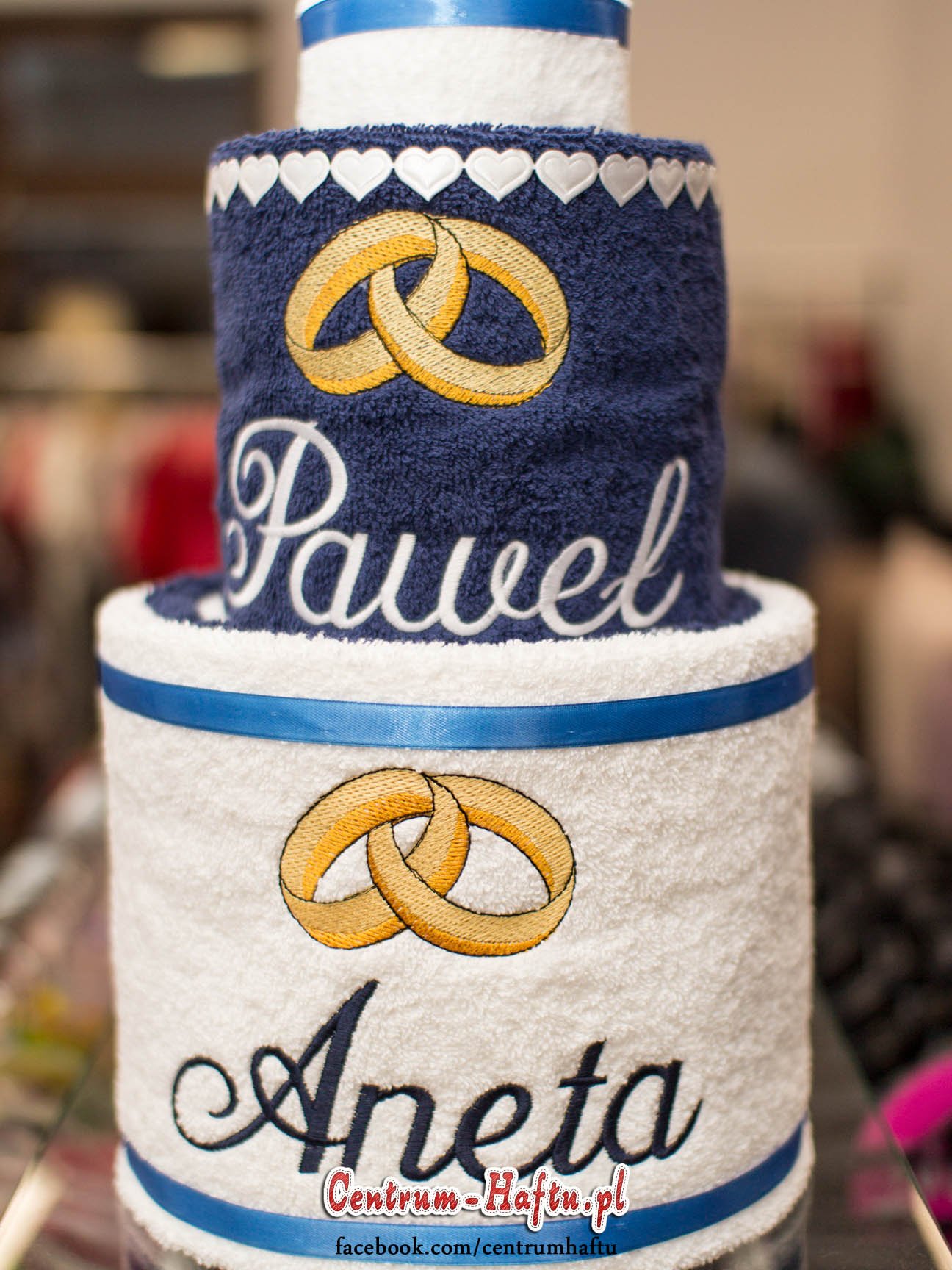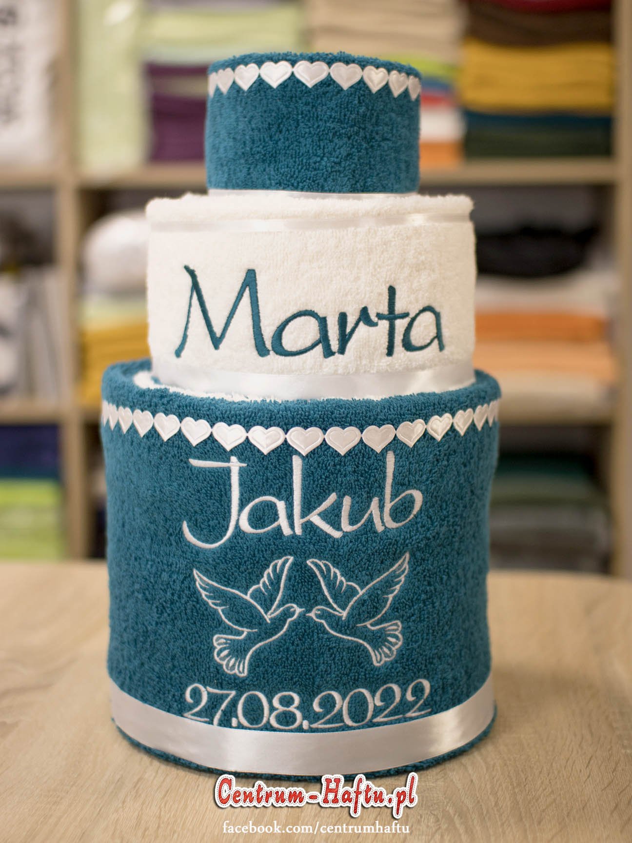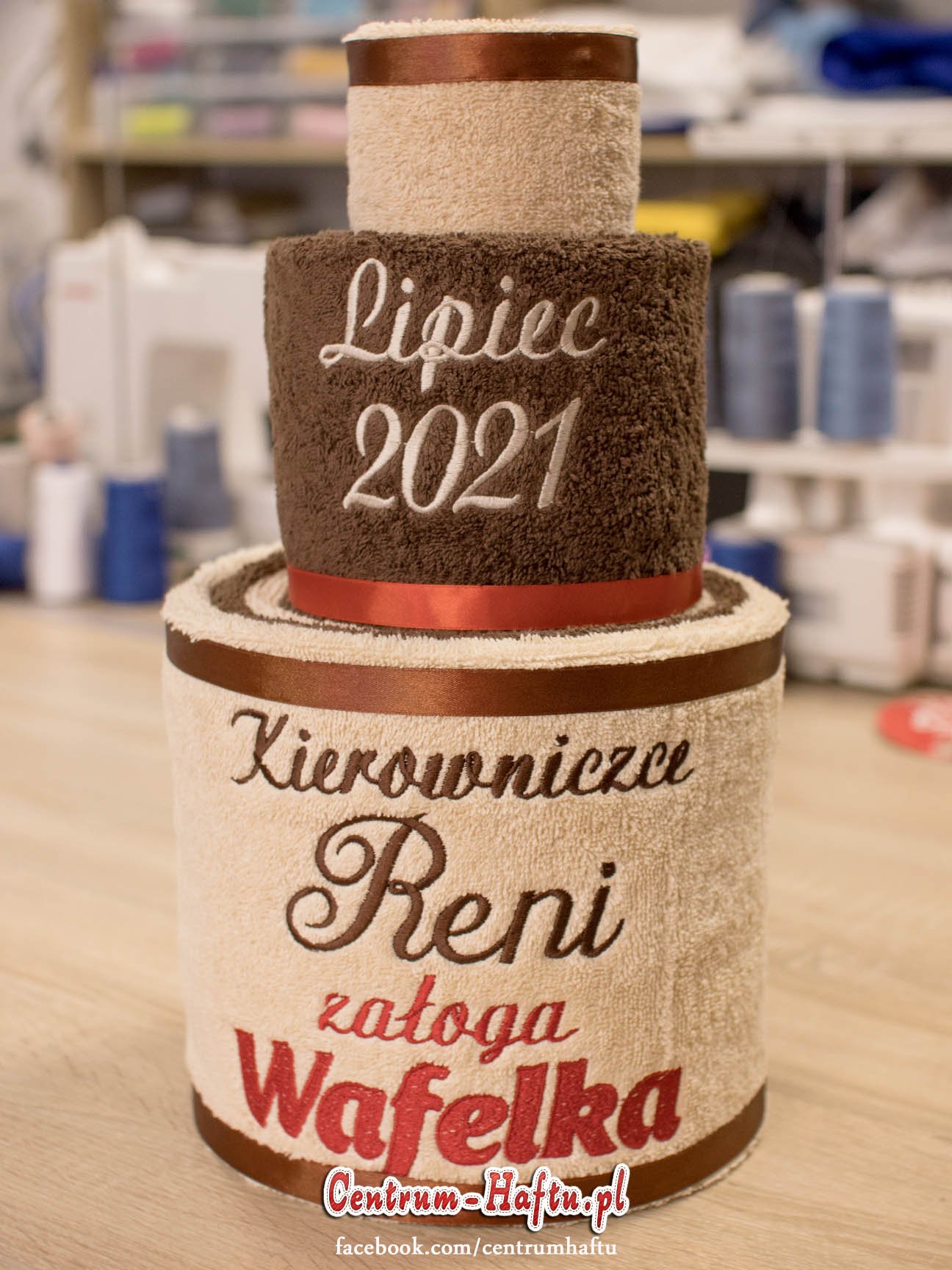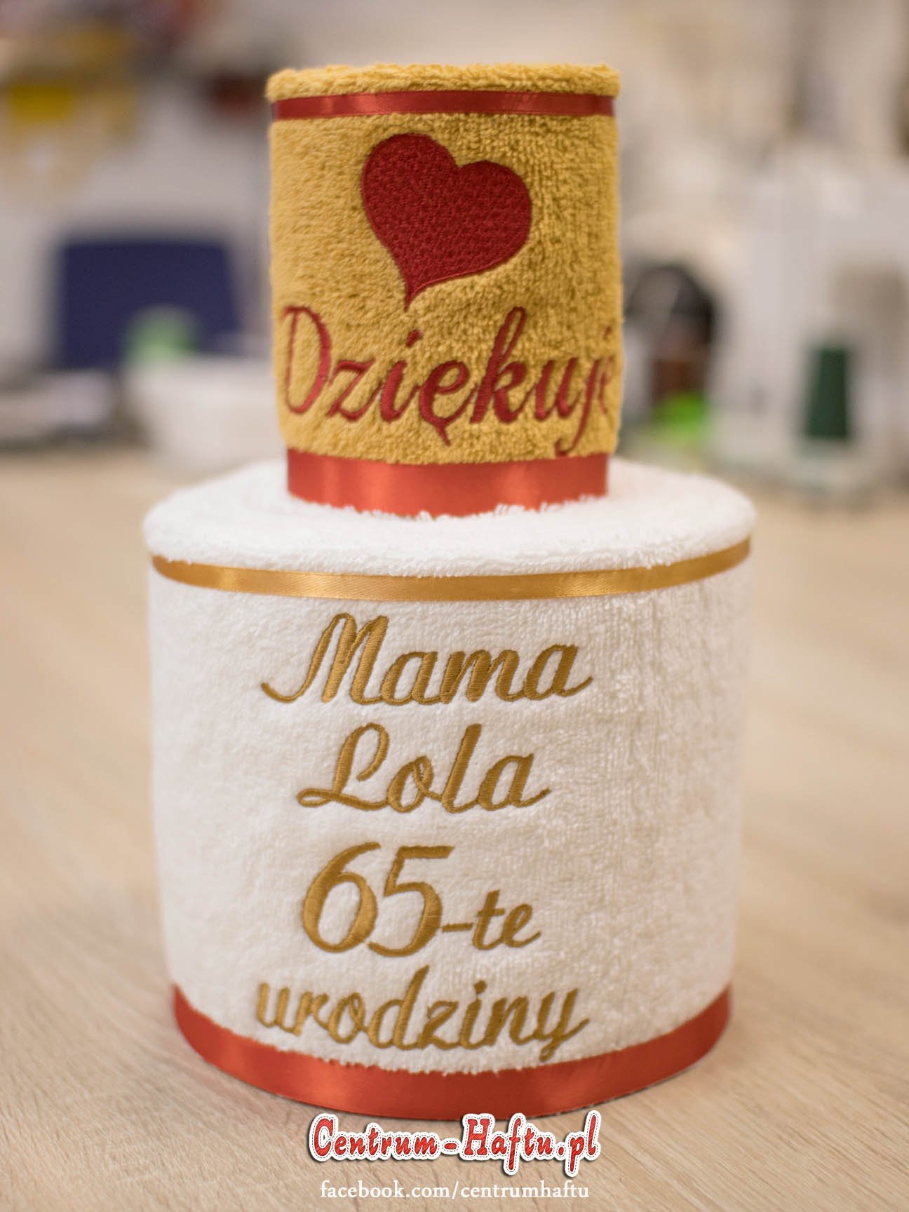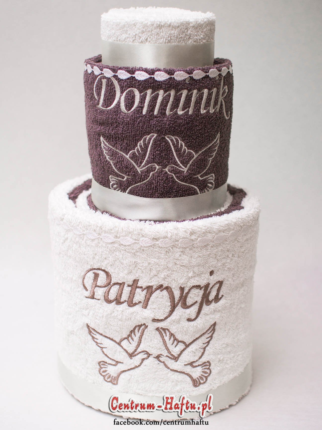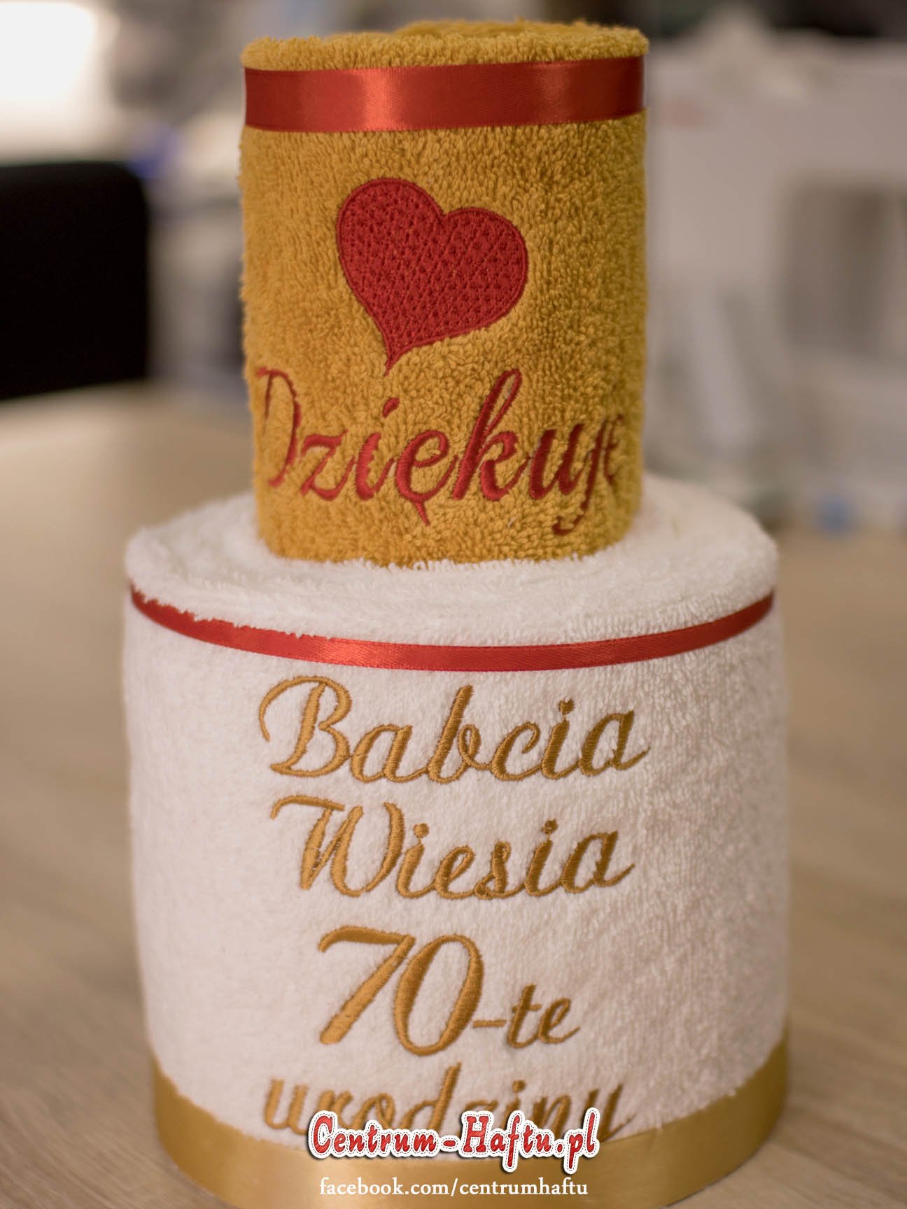 Ręczniki chłonne 500 g/m2 (GSM) grube, porządne, na lata. Zapytaj o dostępne kolory. Oferujemy torty złożone z min. 2 do 4 sztuk ręczników, cukierki złożone standardowo z 1-2 sztuk ręczników, ale jest mozliwość złożenia z większej ilości np. 3-4- sztuk. Dla większych wyhaftowanych grafik, ręczniki składamy w prostokątne tabliczki. Jest możliwość zapakowania w ozdobne pudełko. To haft jest tu głównym zdobieniem, dlatego ilość pozostałych ozdób ograniczyliśmy do niezbędnego minimum.