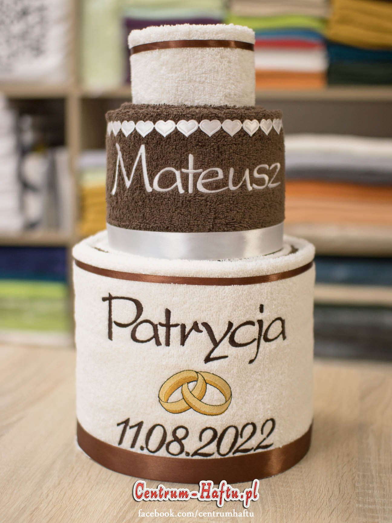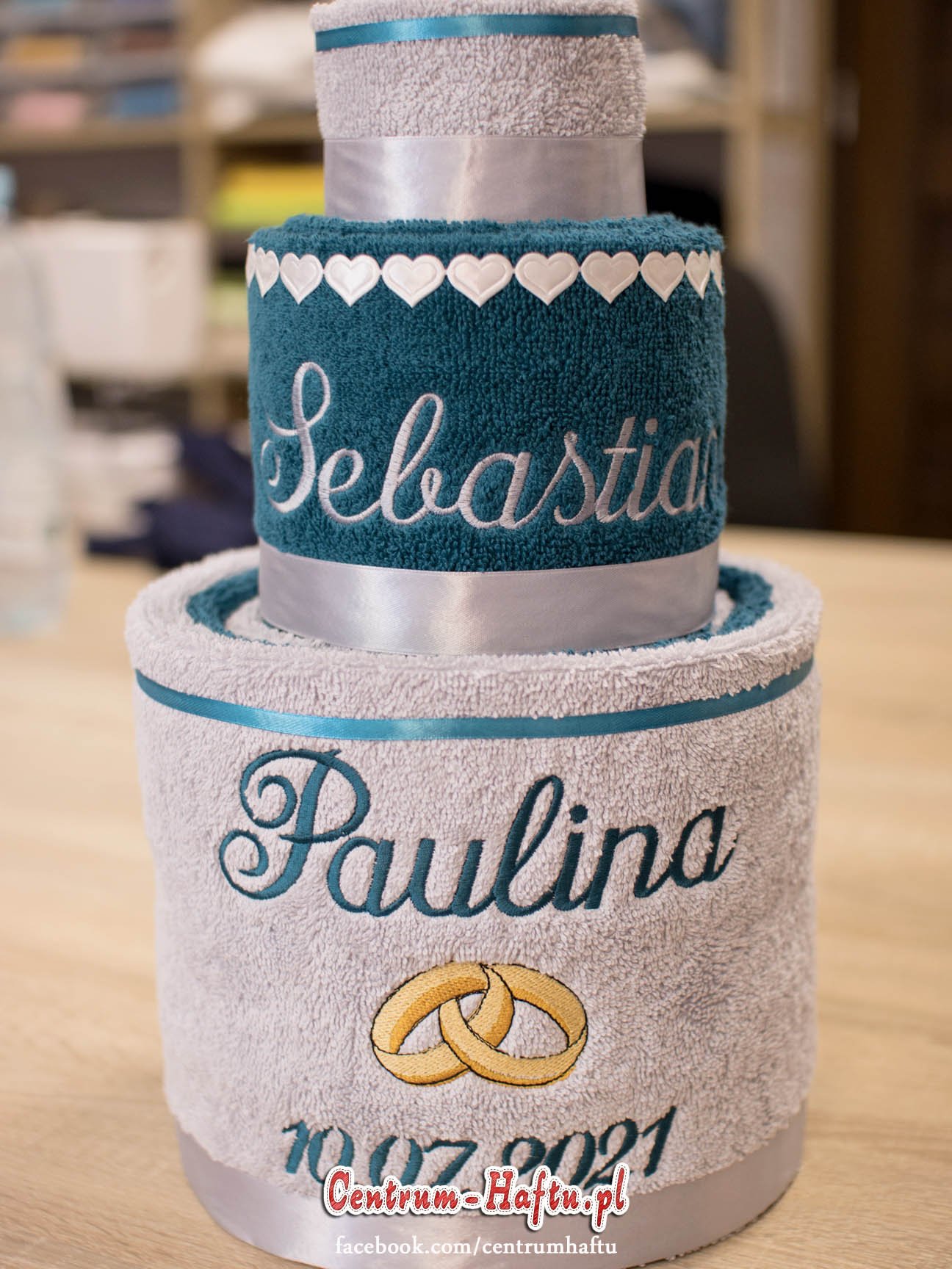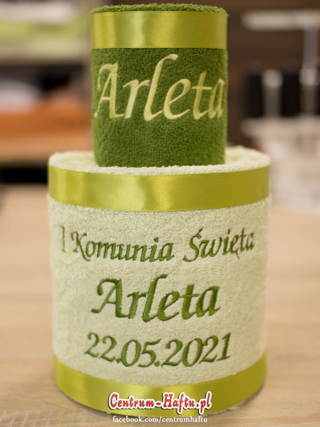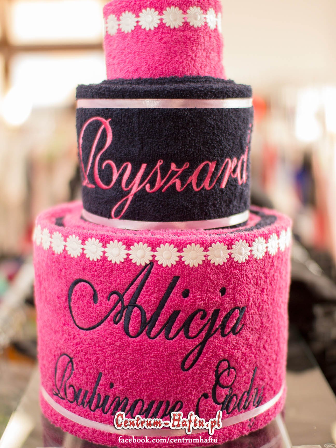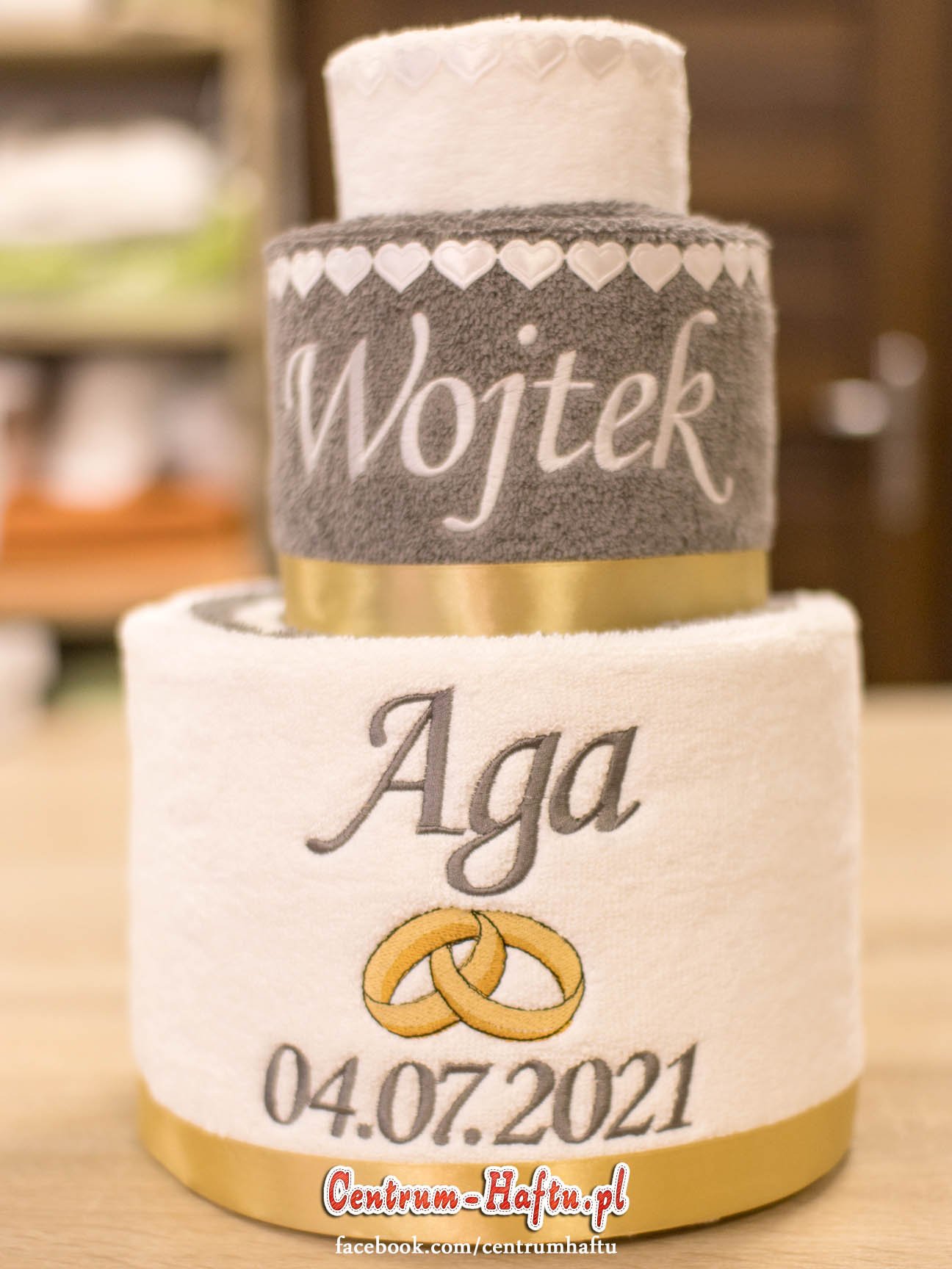 Ręczniki chłonne 500 g/m2 (GSM) grube, porządne, na lata. Zapytaj o dostępne kolory. Oferujemy torty złożone z min. 2 do 4 sztuk ręczników, cukierki złożone standardowo z 1-2 sztuk ręczników, ale jest mozliwość złożenia z większej ilości np. 3-4- sztuk. Dla większych wyhaftowanych grafik, ręczniki składamy w prostokątne tabliczki. Jest możliwość zapakowania w ozdobne pudełko. To haft jest tu głównym zdobieniem, dlatego ilość pozostałych ozdób ograniczyliśmy do niezbędnego minimum.