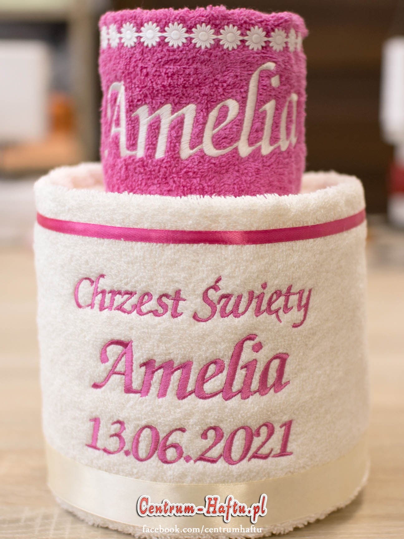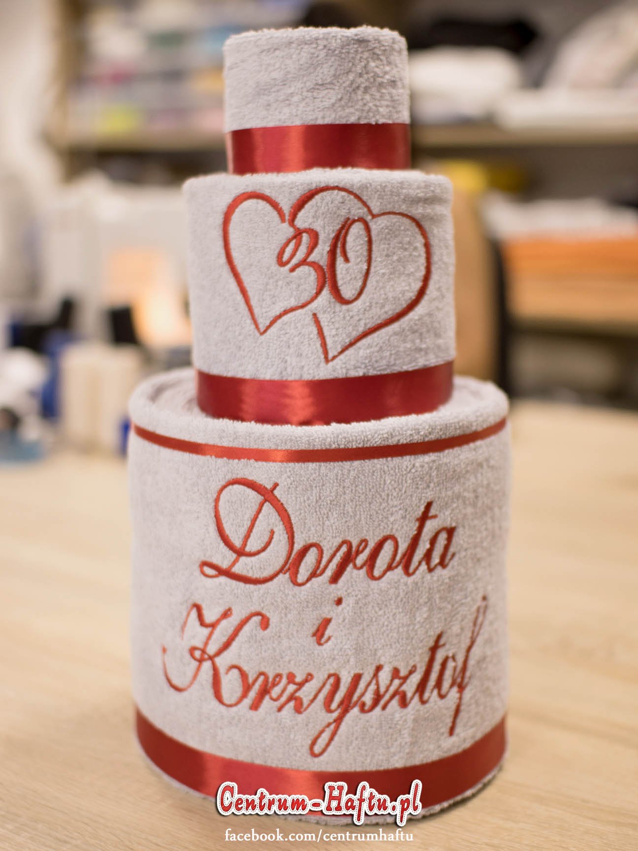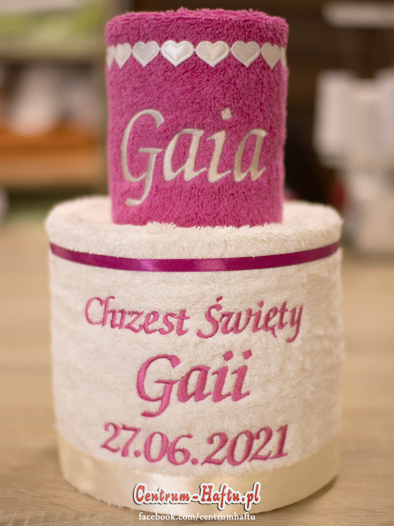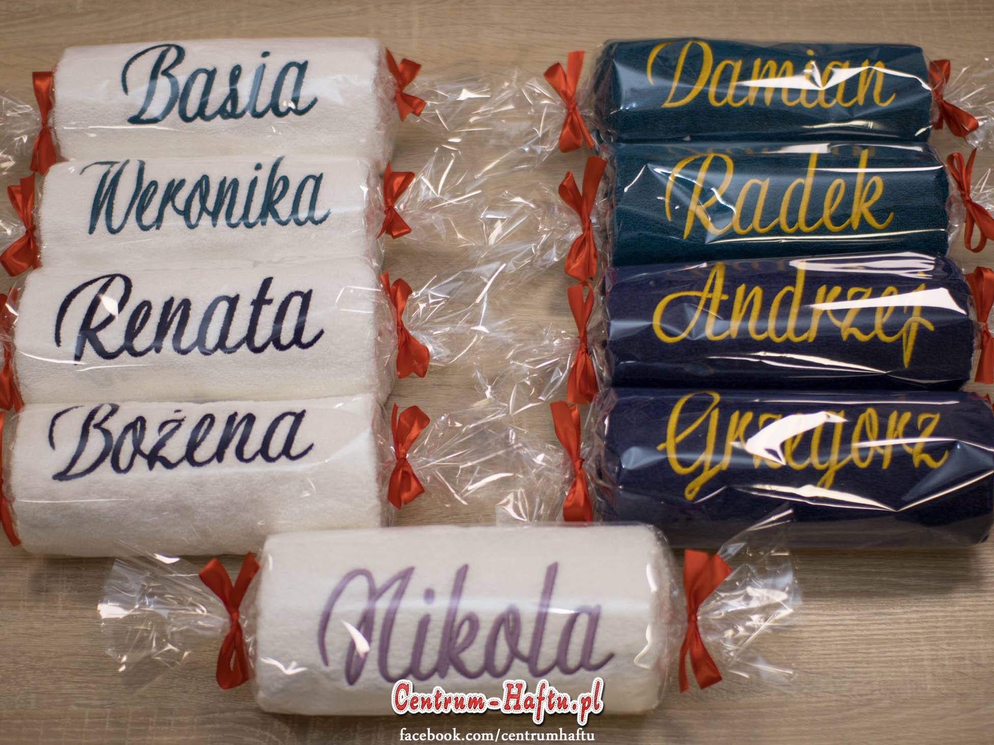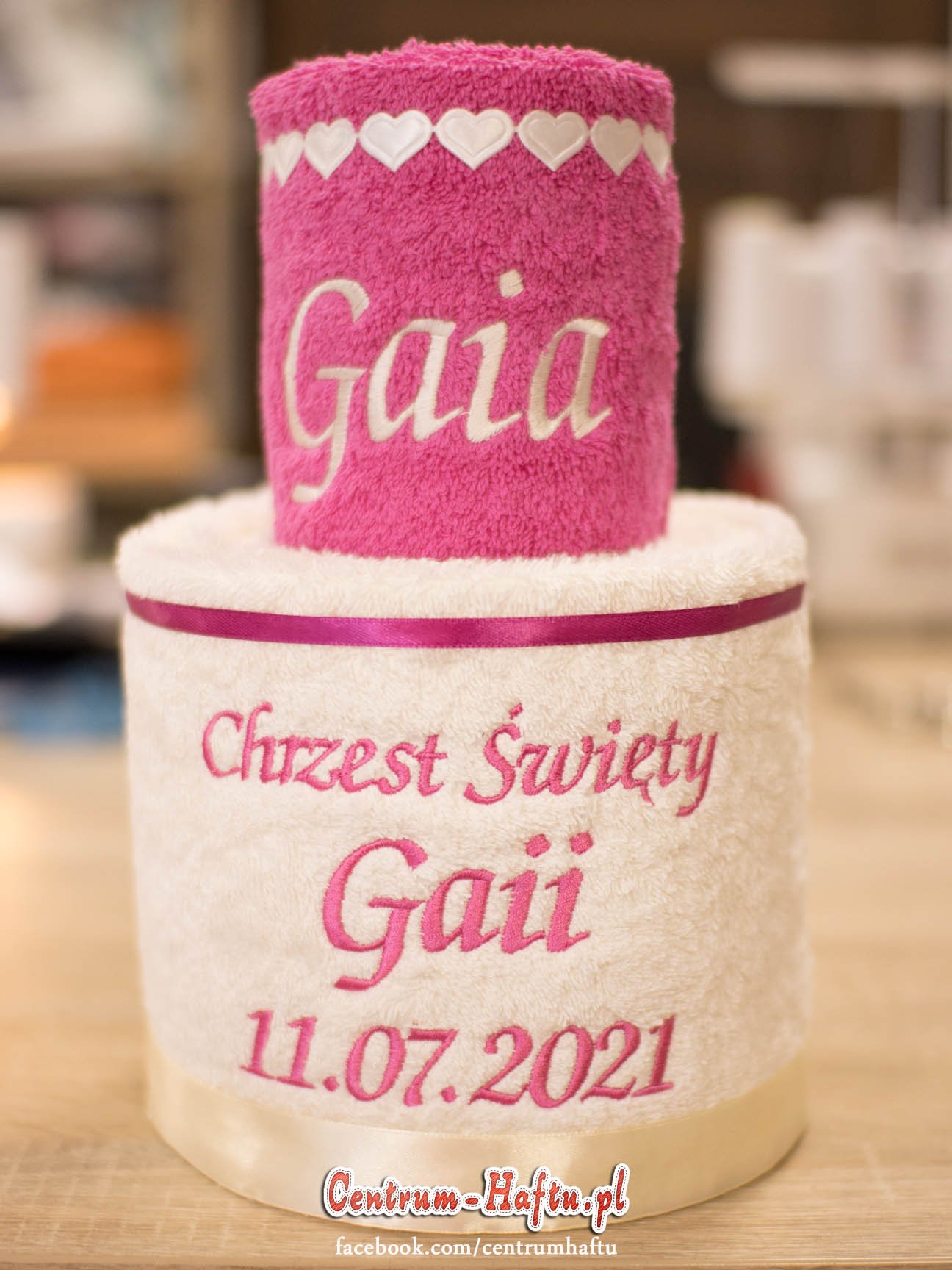 Ręczniki chłonne 500 g/m2 (GSM) grube, porządne, na lata. Zapytaj o dostępne kolory. Oferujemy torty złożone z min. 2 do 4 sztuk ręczników, cukierki złożone standardowo z 1-2 sztuk ręczników, ale jest mozliwość złożenia z większej ilości np. 3-4- sztuk. Dla większych wyhaftowanych grafik, ręczniki składamy w prostokątne tabliczki. Jest możliwość zapakowania w ozdobne pudełko. To haft jest tu głównym zdobieniem, dlatego ilość pozostałych ozdób ograniczyliśmy do niezbędnego minimum.