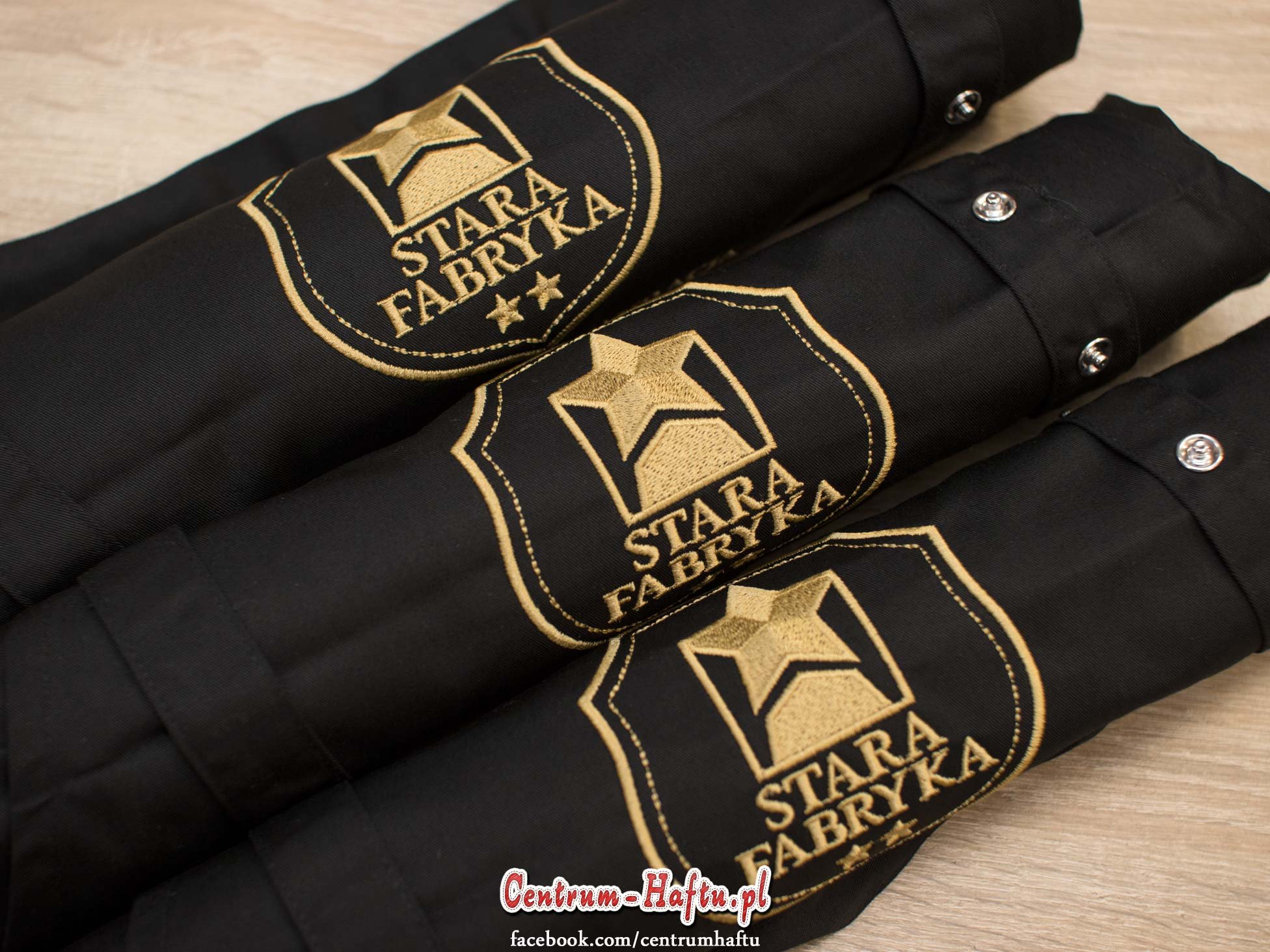 Na szczególną uwagę zasługuje technika wykonania przerywanej linii wewnątrz tarczy loga. W hafcie maszynowym jest niemożliwe wykonanie ściegu fastrygowanego, z wyraźnymi i równymi przerwami, tak aby w miejscach tych przerw nie było widocznej nitki.