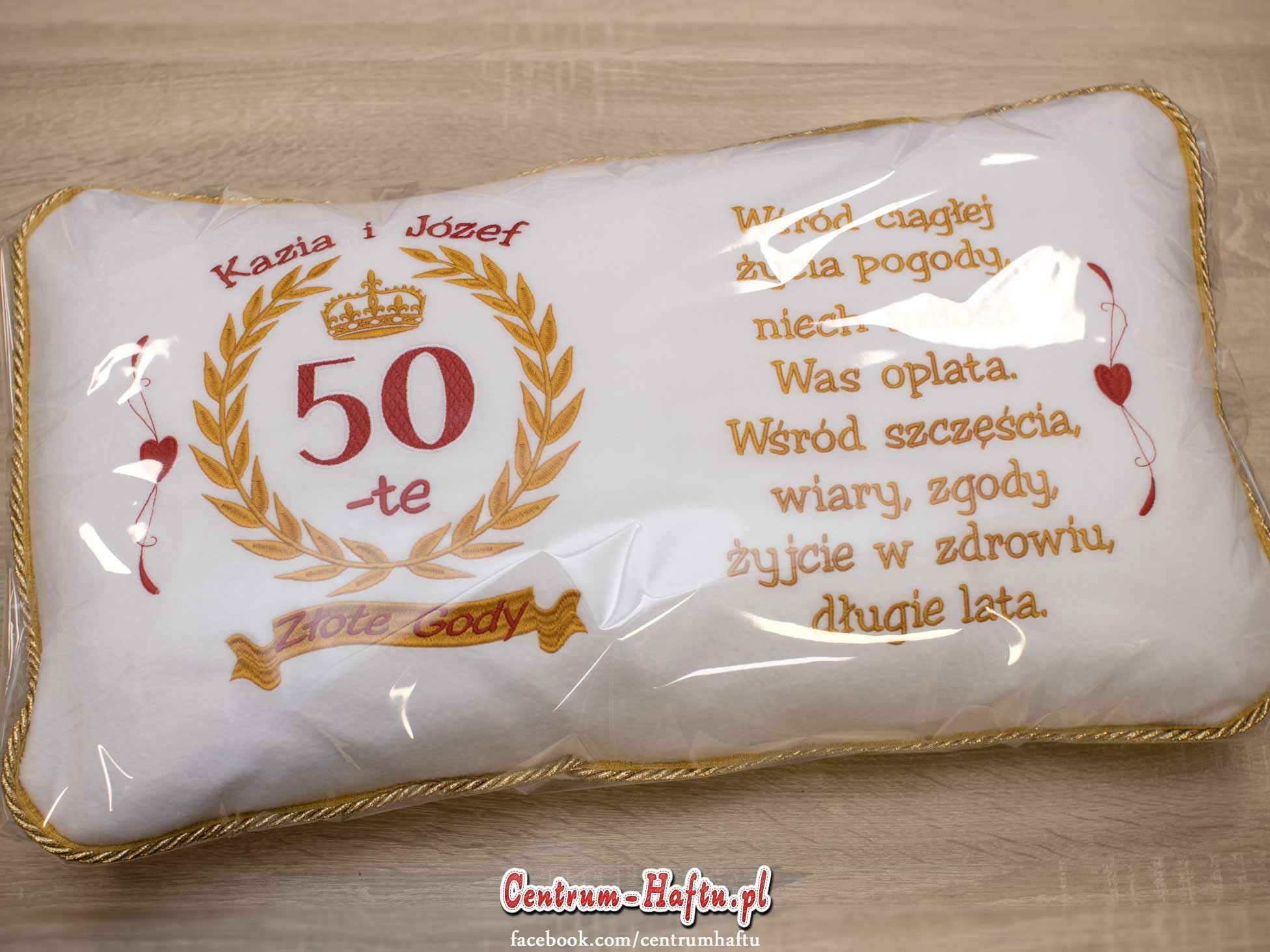 🆕👍Dwie poduszki w jednej, czemu by nie. I tak powstała duża haftowana poduszka polarowa z laurem i dedykacją na złote gody. Poduszka wykończona złotą lamówką ze sznurkiem👈🆕