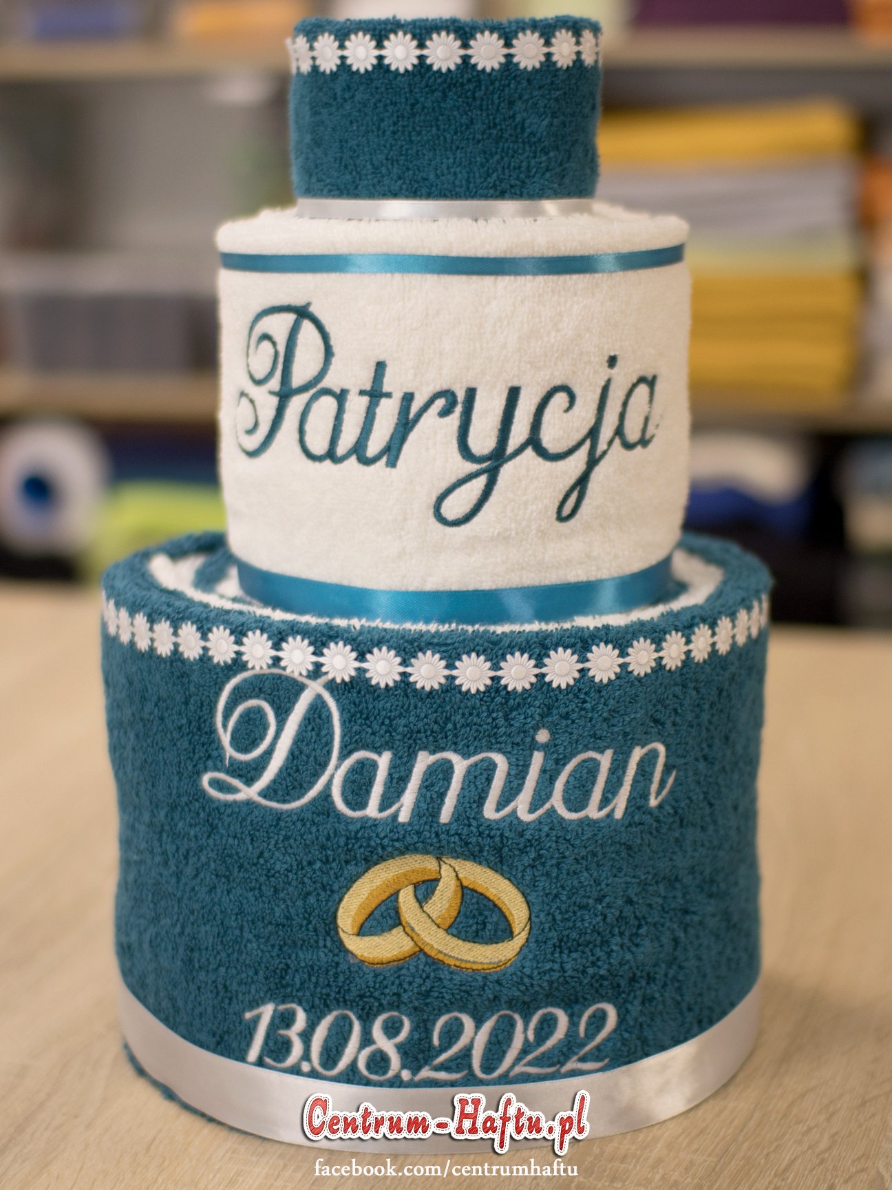 🆕👍Haftowany ślubny tort złożony z czterech ręczników - wszystkie z haftem👈🆕