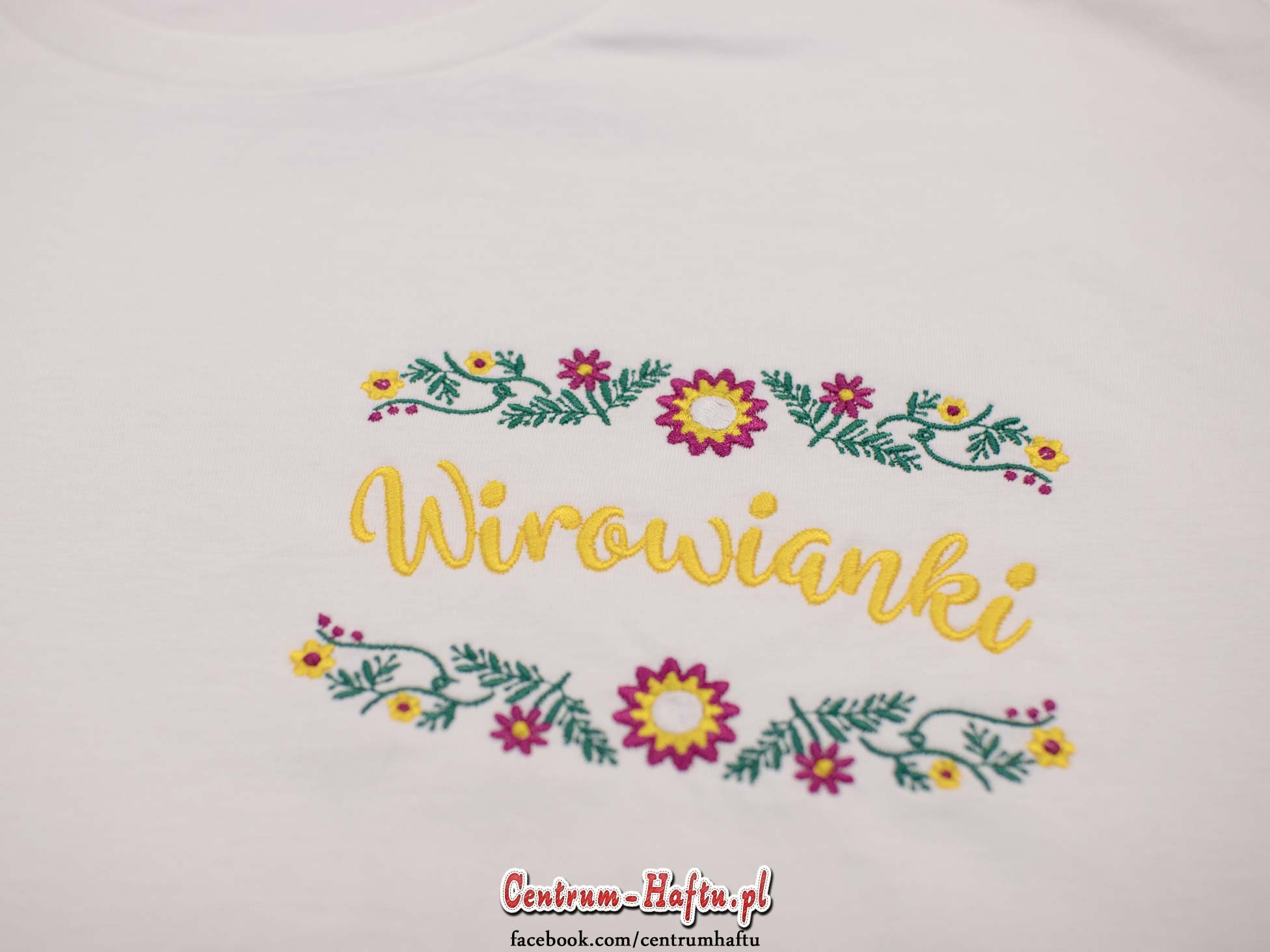 🆕👍 Kilkanaście białych koszulek t-shirt z haftowanym motywem kwiatowym dla KGW WIROWIANKI👈🆕