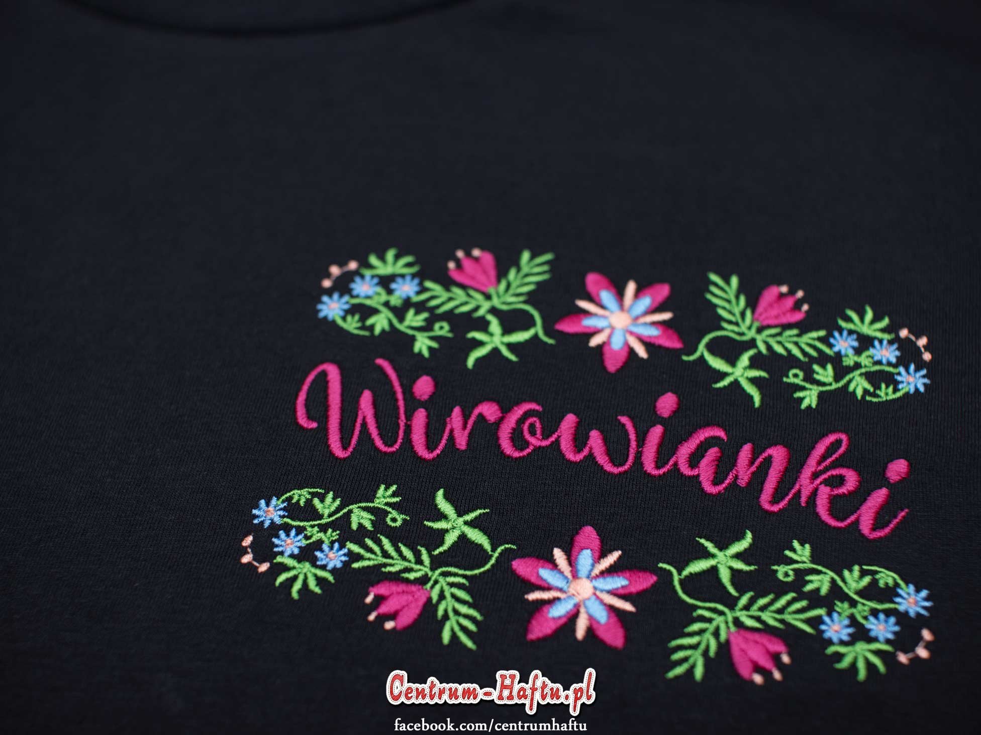 🆕👍 Kilkanaście czarnych koszulek t-shirt z haftowanym motywem kwiatowym dla KGW WIROWIANKI👈🆕