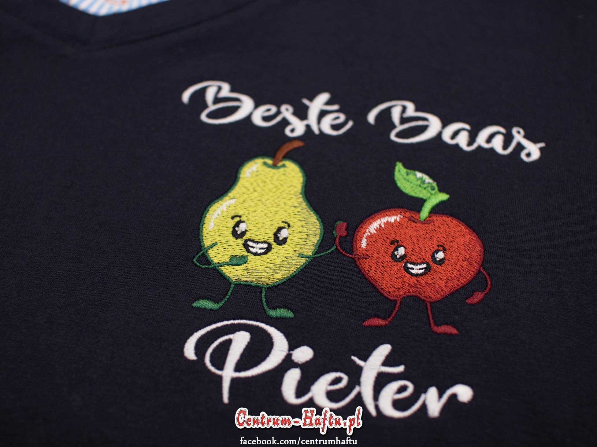 🆕👍 Haftowane owoce na koszulce t-shirt z kołnierzem w serek typu V-neck👈🆕