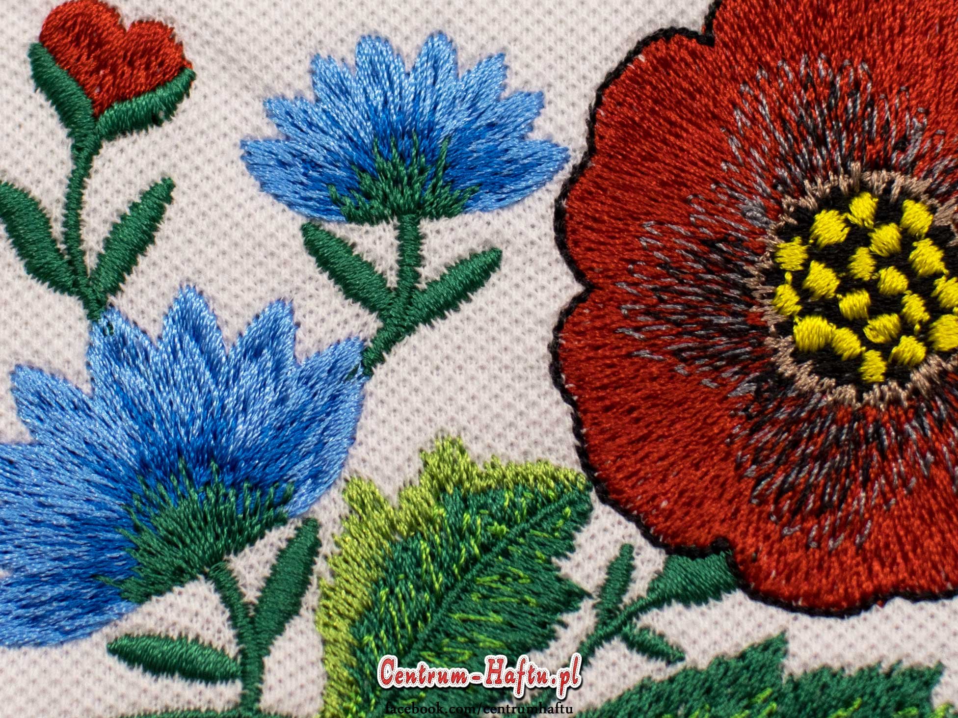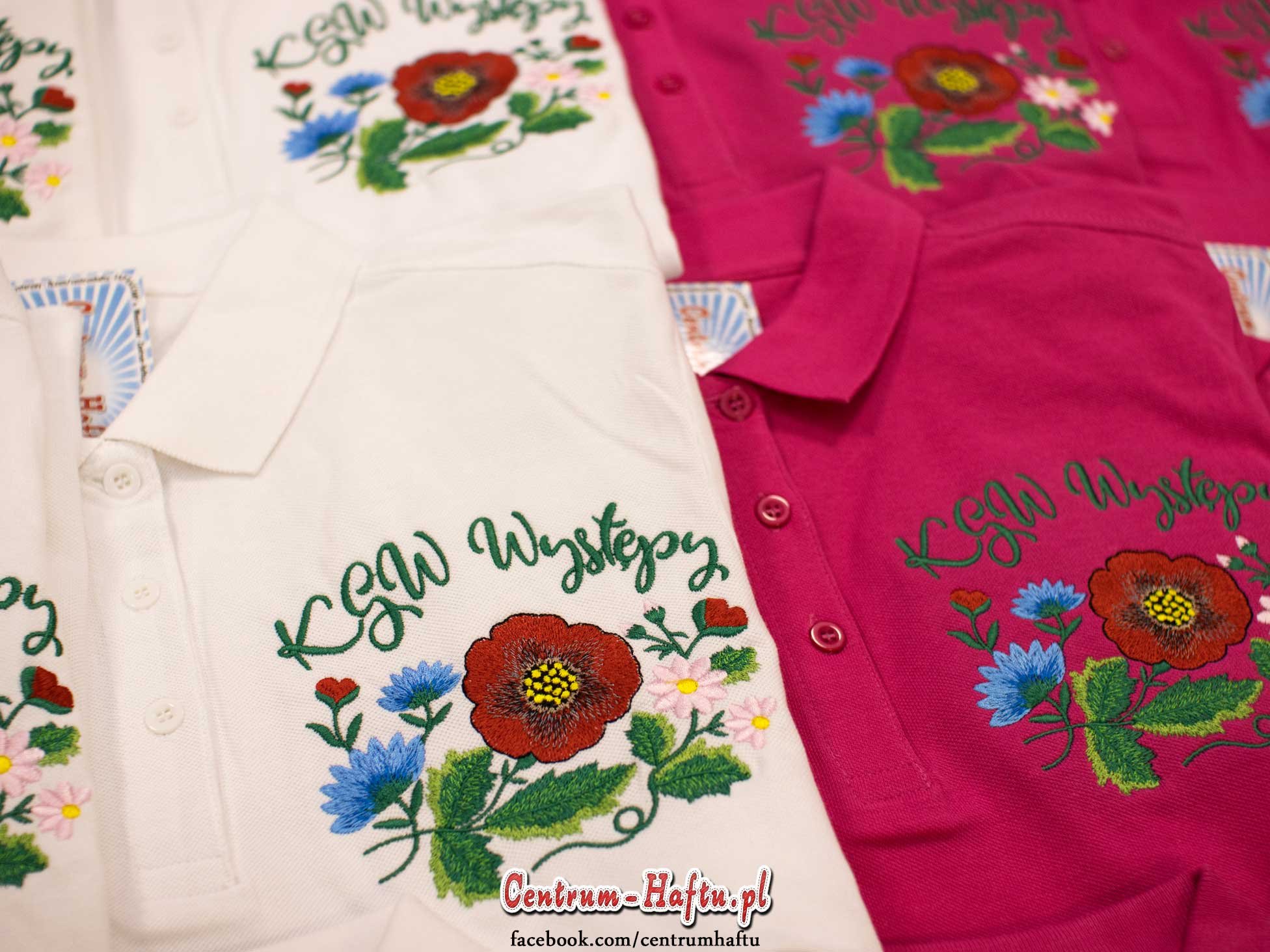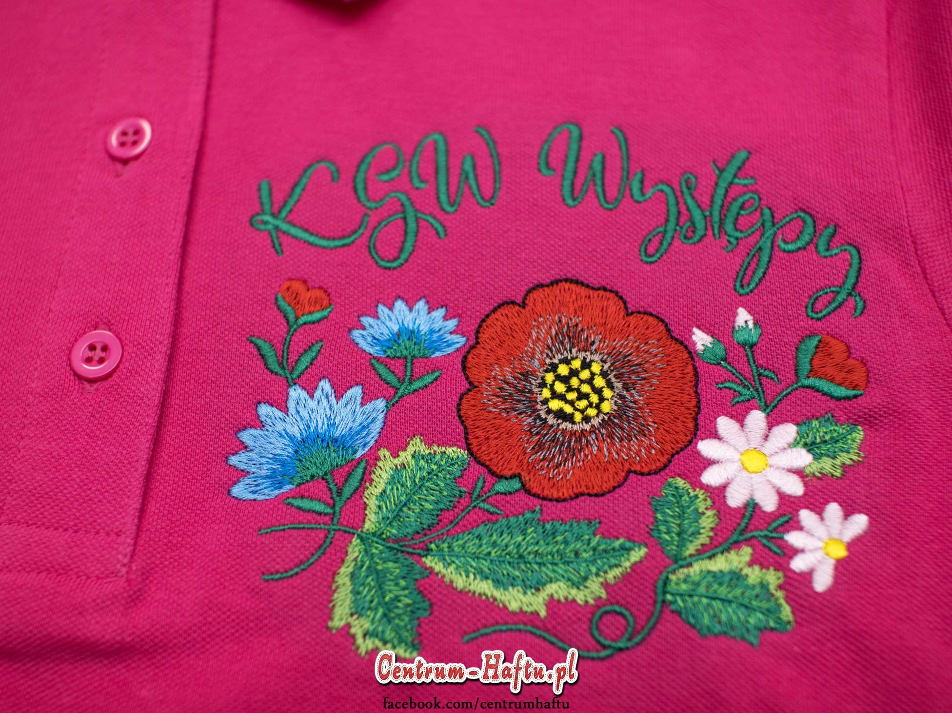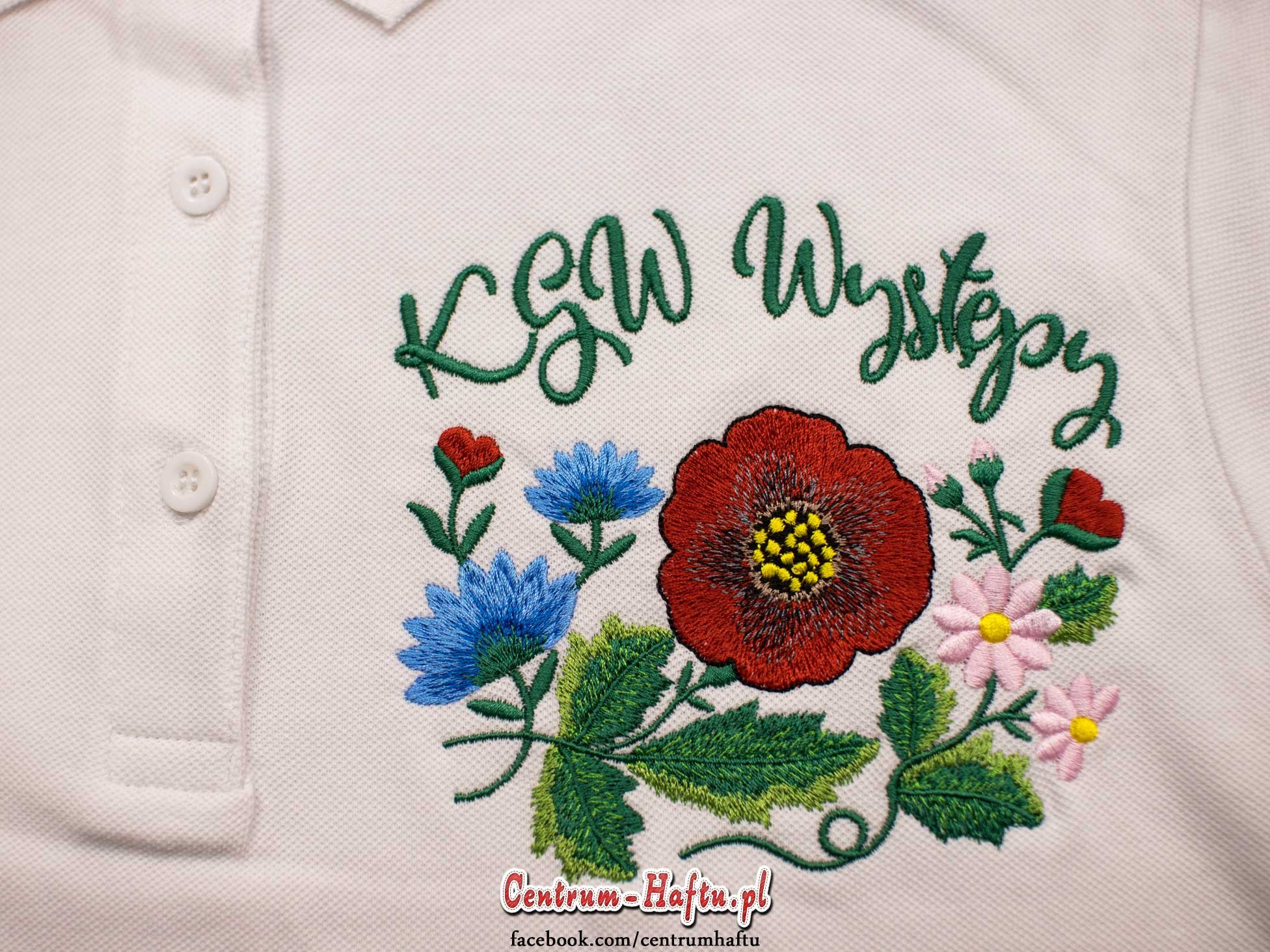 馃啎馃憤Wielowarstwowy motyw kwiatowy wyhaftowany na piersi koszulek polo Ko艂a Gospody艅 Wiejskich KGW Wyst臋py. Haft ma wiele szczeg贸艂贸w, ale dobrze opracowany projekt haftu zawsze wyjdzie perfekcyjnie i b臋dzie cieszy艂 oko.馃憟馃啎