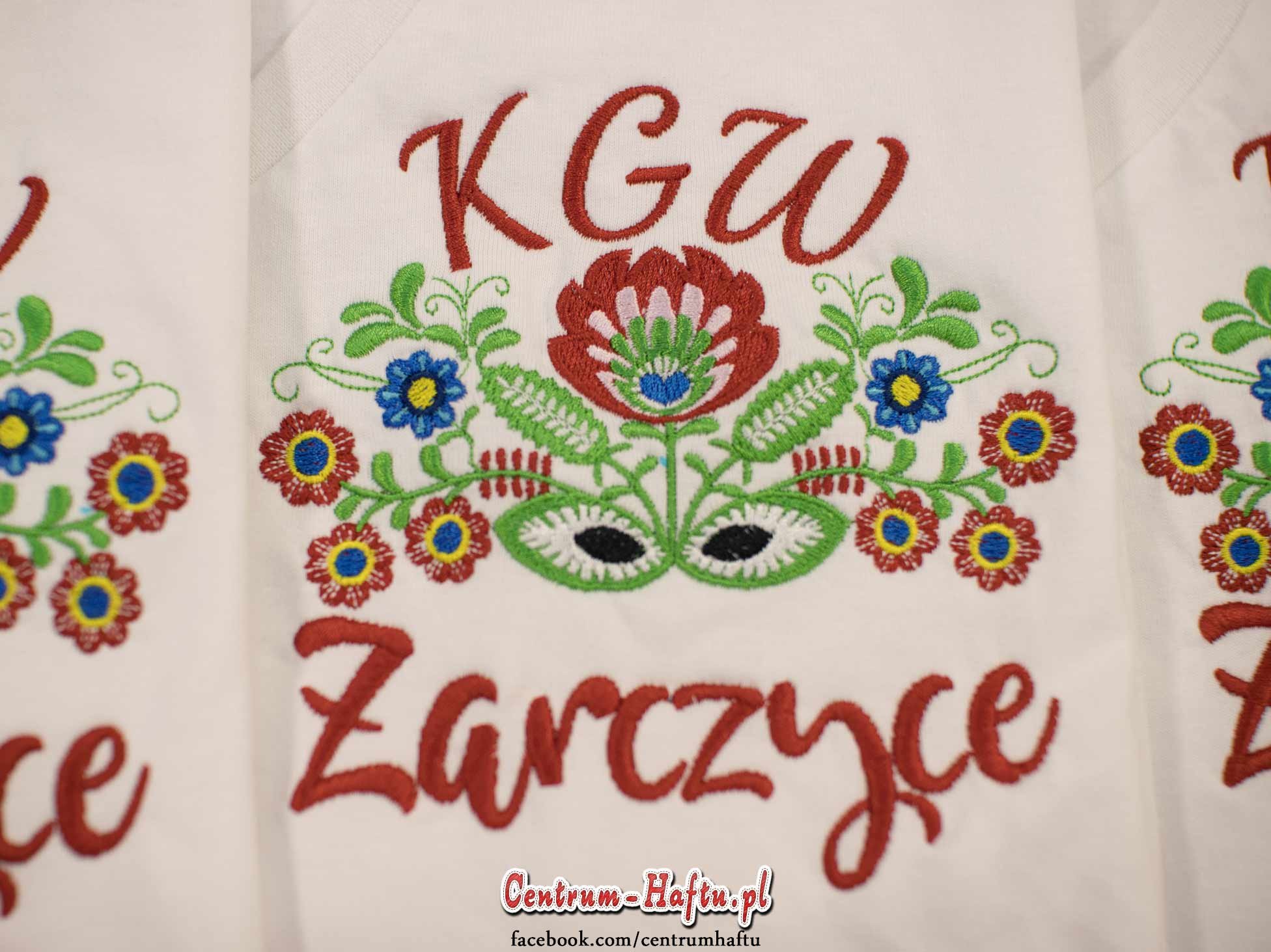 🆕👍Ludowy motyw kwiatowy wyhaftowany na piersi koszulek t-shirt dla Koła Gospodyń Wiejskich - KGW Żarczyce.👈🆕
