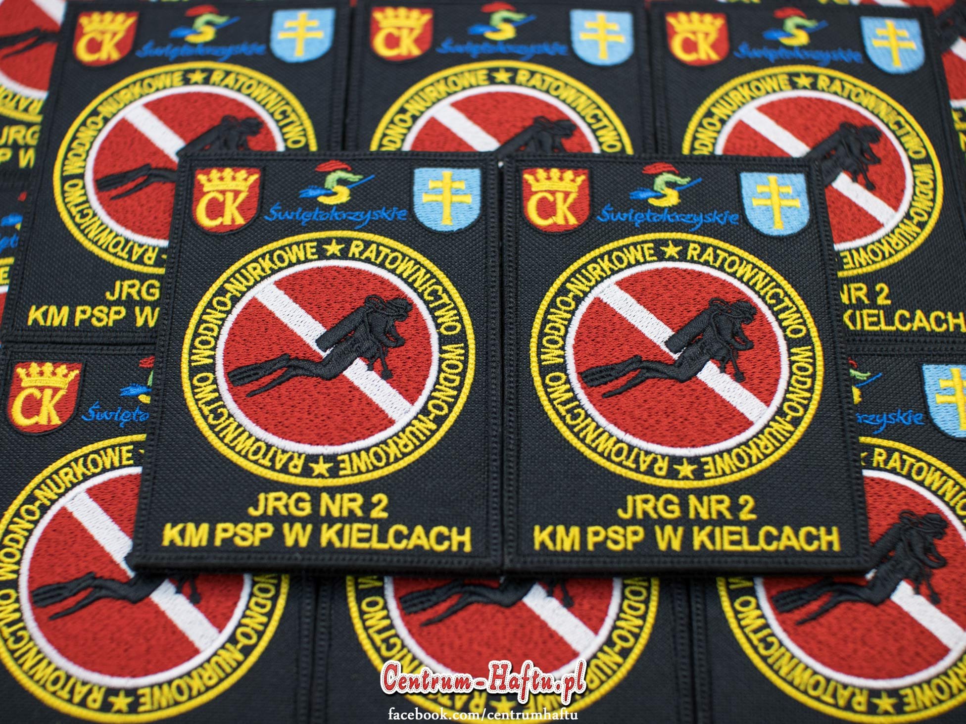 馃啎馃憤 Kolejna cz臋艣膰 zam贸wienia dla KM PSP w Kielcach, tym razem 40 tarcz dla jednostki JRG nr 2. Prosz臋 zwr贸ci膰 uwag臋 na drobne napisy oraz inne szczeg贸艂y, w szczeg贸lno艣ci posta膰 nurka, kt贸ry zosta艂 wyhaftowany z dba艂o艣ci膮 o ka偶dy detal. Dzi臋ki temu nurek nie wygl膮da jak p艂aska dwuwymiarowa czarna plama, ale widzimy ca艂膮 struktur臋 postaci i akwalungu. Zawsze dbamy o estetyk臋 i jako艣膰 haftu. Ponadto tarcze s膮 zszyte z rzepem, brzegi s膮 g艂adkie, starannie i r贸wno wyci臋te..馃憟馃啎