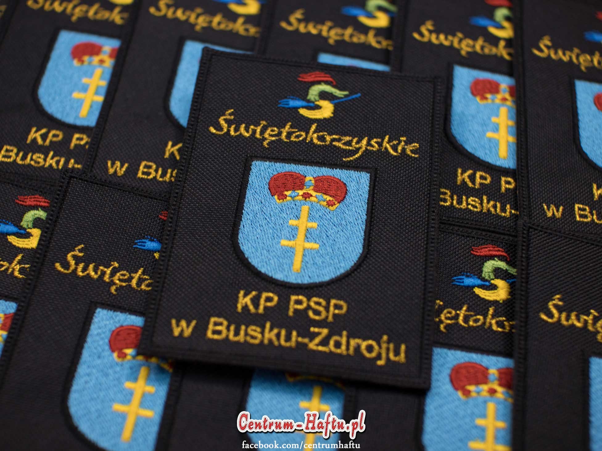 🆕👍 Naszywki dla Komendy Powiatowej Państwowej Straży Pożarnej (KP PSP) w Busku-Zdroju. Wykonane w wysokiej jakości odwzorowania szczegółów grafiki. Napisy wykonane intensywnie złotą nicią metaliczną firmy Madeira👈🆕