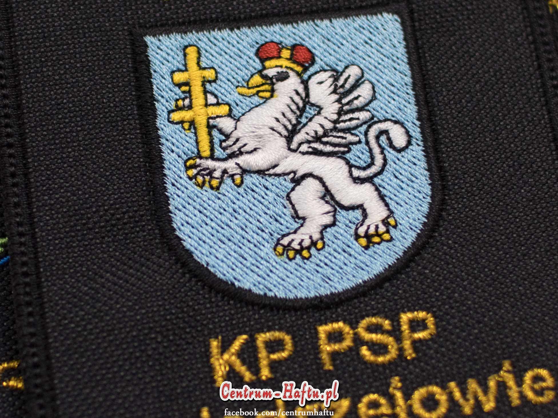 🆕👍 Naszywki dla Komendy Powiatowej Państwowej Straży Pożarnej (KP PSP) w Jędrzejowie wykonane w wysokim stopniu jakości i odwzorowania szczegółów grafiki. Napisy wykonane intensywnie złotą nicią metaliczną firmy Madeira👈🆕