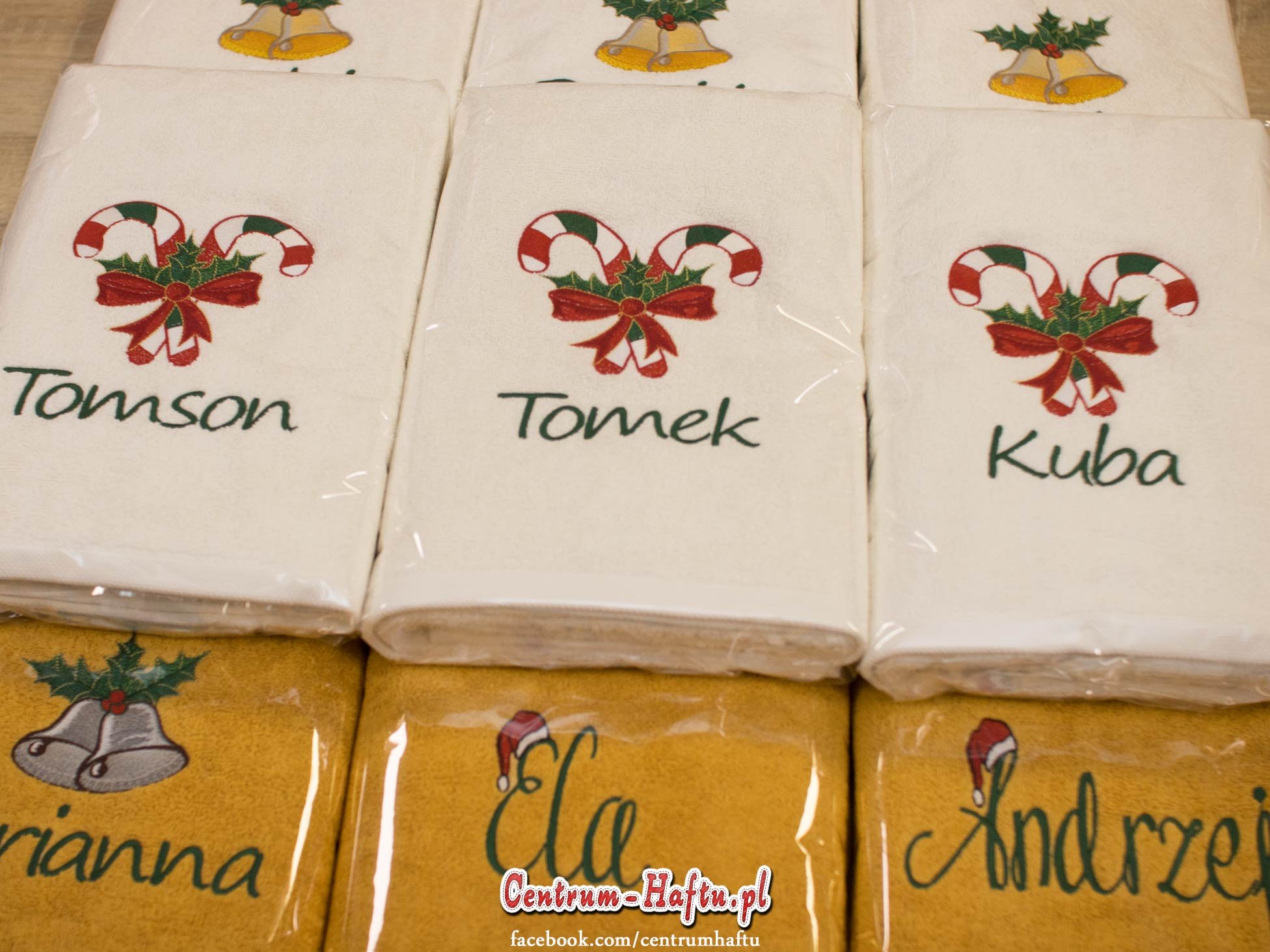🆕👍Ręczniki z wyhaftowanymi motywami świątecznymi oraz z imieniem. Wielokolorowy haft, bardzo dopracowany. Ręczniki są porządne na lata: chłonne, grube - 500 GSM👈🆕