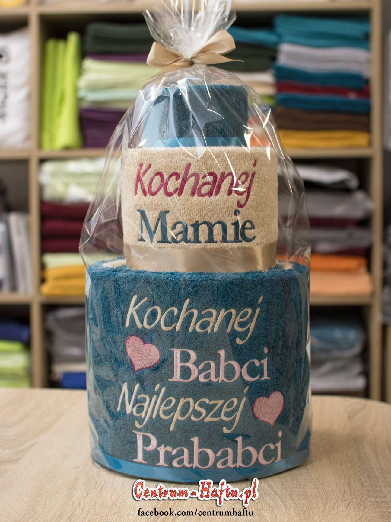🆕👍 🆕👍 Haftowany tort złożony z czterech ręczników dla Mamy, Babci i Prababci.👈🆕